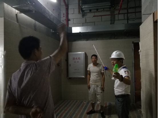 (质量检查从不落下,施工内容当天必须由主管朱庆带人检查完成)