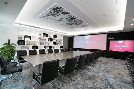 近年来,公司斥资220万引进全方位的视频会议培训系统和装饰物联网机器人,实现自主迎宾、定点讲解、道路引导、疑问解答等商务接待服务!